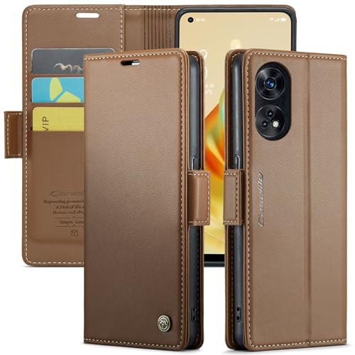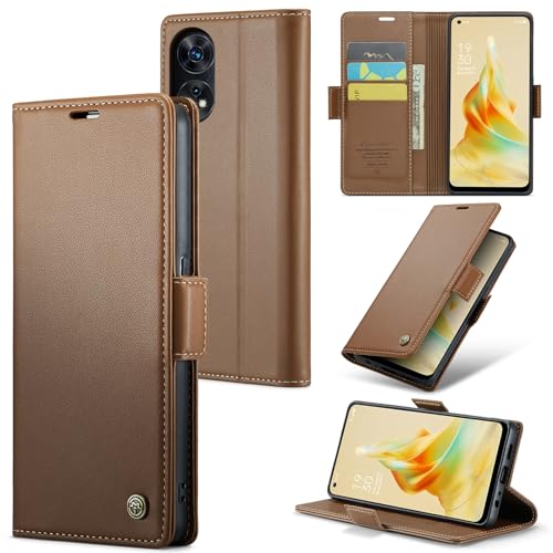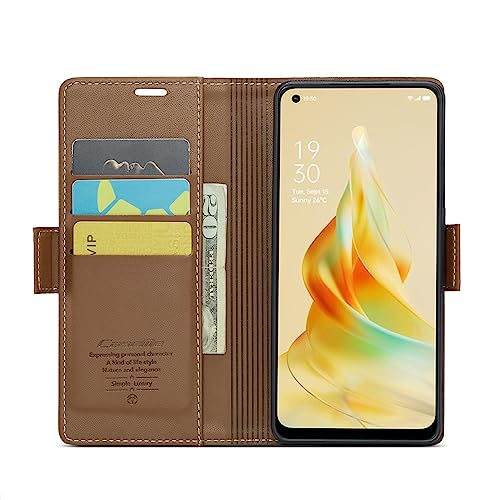 Generic - جراب موبايل متوافق مع اوبو رينو 8T 4G قلاب من جلد البولي يوريثين الفاخر فتحة حامل بطاقات 4G بني