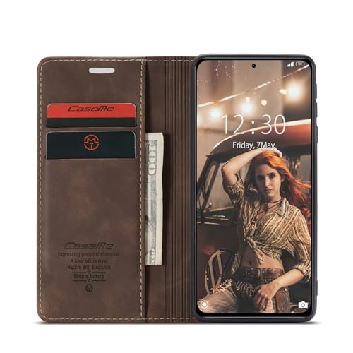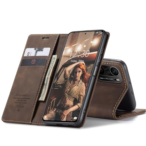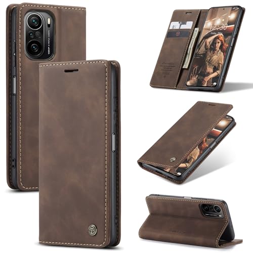 Generic - جراب حماية قابل للطي من الجلد الصناعي بتصميم مغناطيسي ومزود بفتحة للكروت وحامل عملي ومتوافق مع موبايل بوكو F3، بني غامق (كوفي)
