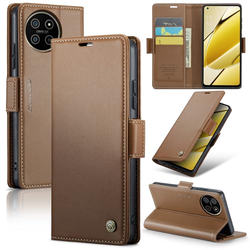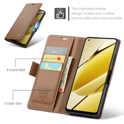Generic - جراب موبايل متوافق مع موبايل ريلمي 11 4G الجيل الرابع، غطاء قلاب من جلد البولي يوريثين بفتحة للبطاقات (بني)