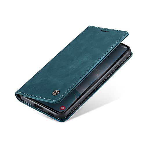 Generic - جراب موبايل جلد أفقي متعدد الوظائف مع فتحة للبطاقات وحامل ومحفظة متوافق ريلمي جي تي نيو 5 اس اي لون أخضر مائل إلى الأزرق منقلب