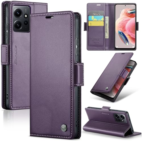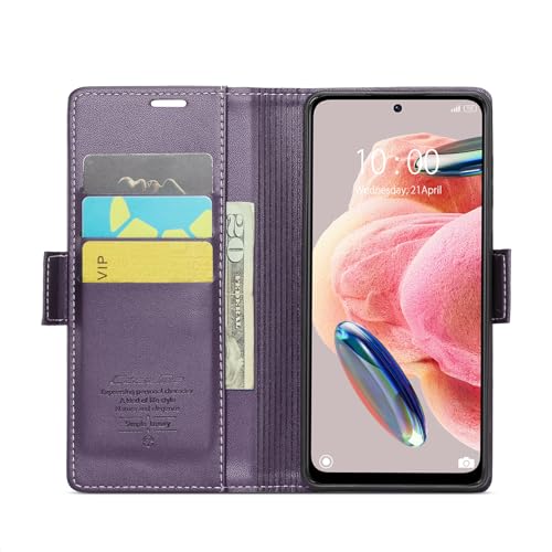 Generic - جراب موبايل من الجلد الصناعي بنمط مطوي مع فتحة حامل كروت متوافق مع ريدمي نوت 12 الجيل الرابع 4G (أرجواني)، منقلب