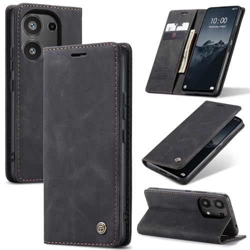 Generic - جراب موبايل متوافق مع ريدمي نوت 13 برو شبكة الجيل الرابع 4G بتصميم أنيق من جلد البولي يوريثين 2 غطاء قلاب وحامل بطاقات (أسود)
