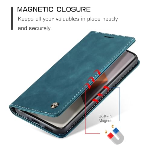 Generic - جراب موبايل متوافق مع ريدمي نوت 13 برو بلس شبكة الجيل الخامس 5G بتصميم فاخر من جلد البولي يوريثين مع 2 غطاء قلاب وحامل بطاقات متوافق مع ريدمي نوت 13 برو بلس 5G (أزرق)