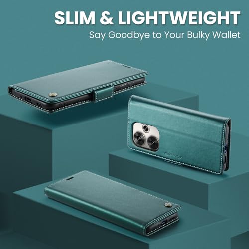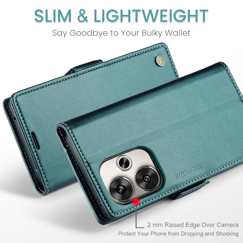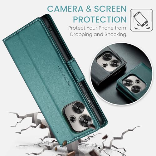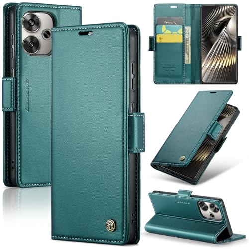 Generic - جراب موبايل متوافق مع ريدمي تيربو 3 - بوكو F6 من جلد البولي يوريثين الفاخر غطاء قلاب بفتحة للبطاقات - F6 اخضر .