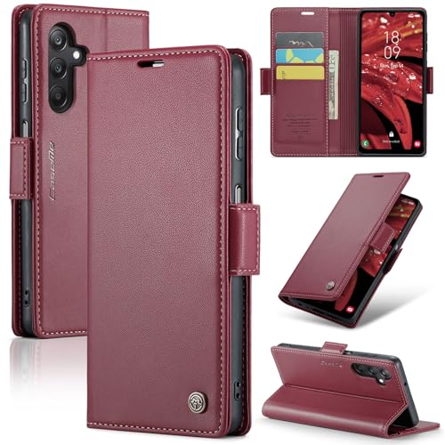 Generic - جراب موبايل متوافق مع سامسونج جالاكسي A25 من جلد البولي يوريثين الفاخر، غطاء قلاب بفتحة للبطاقات (احمر)