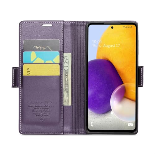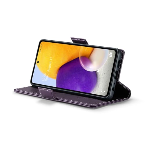 Generic - جراب موبايل متوافق مع سامسونج جالاكسي A72 غطاء قلاب فاخر من جلد البولي يوريثين بفتحة للبطاقات A72 ارجواني