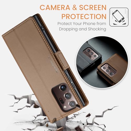 FASCINATION - جراب موبايل متوافق مع سامسونج جالاكسي نوت 20 الترا متعدد الوظائف قابل للطي افقي من جلد البولي يوريثين فتحة للبطاقات وحامل ومحفظة لسامسونج بني منقلب