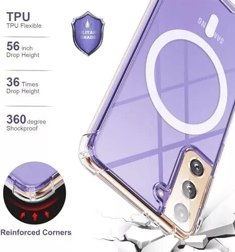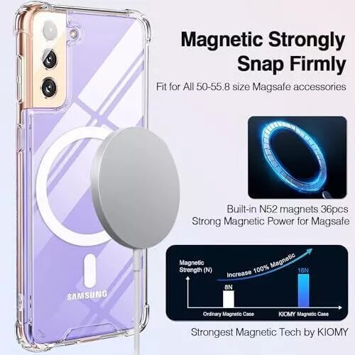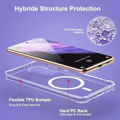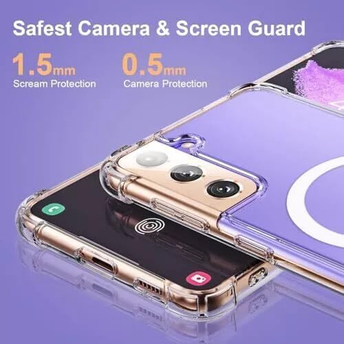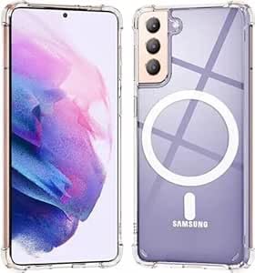 ELMO3EZZ - جراب موبايل متوافق مع سامسونج جالاكسي S21 [متوافق مع خاصية الشحن المغناطيسي]. جراب مقاوم للصدمات والغبار مع حماية من الدرجة العسكرية ثلاثية الطبقات