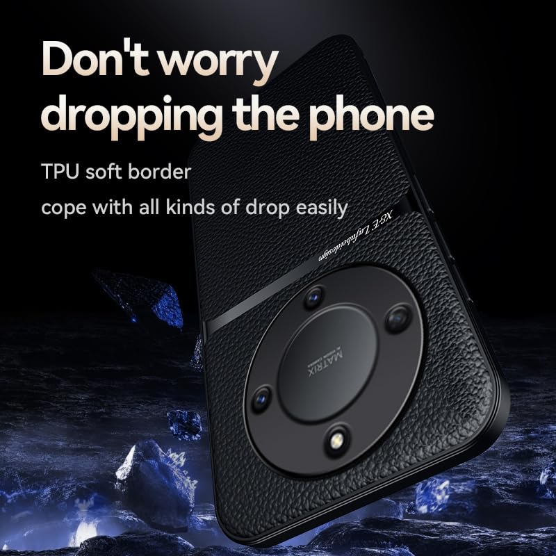 UNBLACK - جراب حماية خلفي من الجلد والبولي يوريثين المقاوم للحرارة مقاوم للصدمات متوافق مع موبايل هونر X9A (لون أسود)