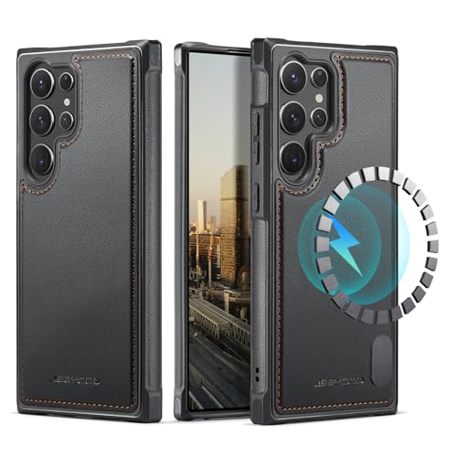 UNBLACK - جراب خلفي فاخر من جلد البولي يوريثين عالي الجودة للشحن اللاسلكي المغناطيسي متوافق مع سامسونج جالاكسي S24 الترا (اسود)