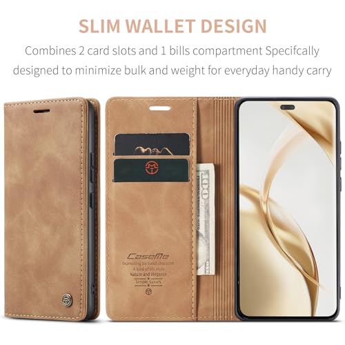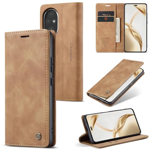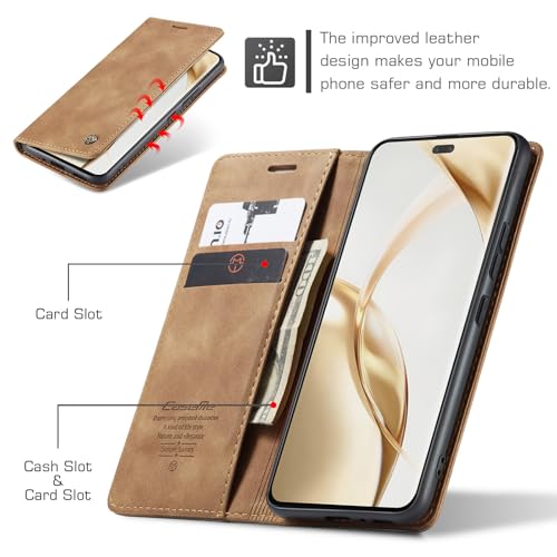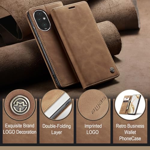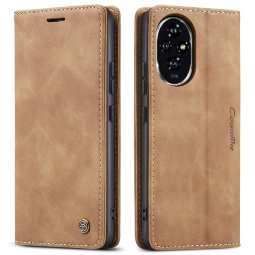 UNBLACK - جراب موبايل فاخر من جلد البولي يوريثان بتصميم 013 وغطاء قابل للطي مع حامل للبطاقات متوافق مع هاتف هونر 200 برو (لون بني)