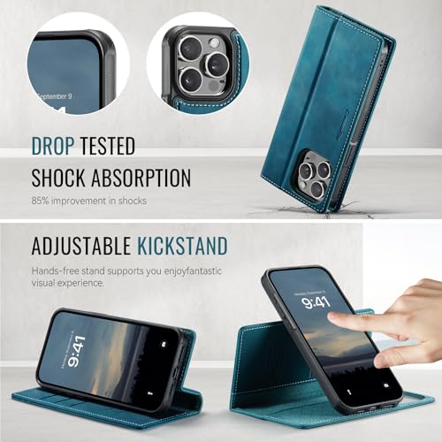 UNBLACK - جراب حماية من الجلد الصناعي متوافق مع موبايل آيفون 16 برو ماكس، بتصميم قلاب قابل للطي مع فتحة كروت ويدعم الشحن اللاسلكي المغناطيسي، (لون أخضر)