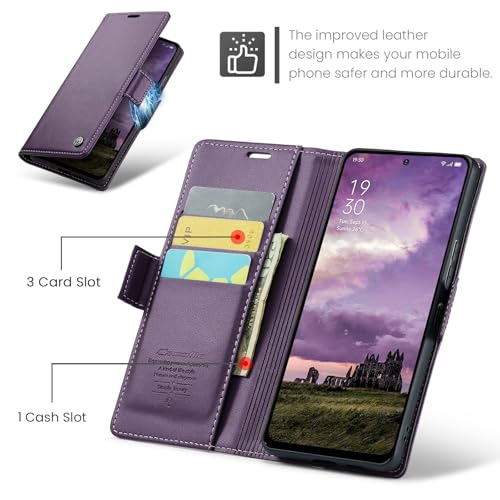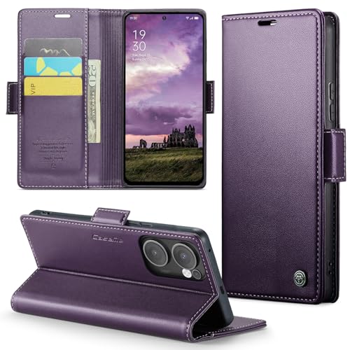 UNBLACK - جراب موبايل من الجلد الصناعي 023 من انبلاك، غطاء قلاب بفتحة للبطاقات متوافق مع موبايل أوبو رينو 13F، (أرجواني)
