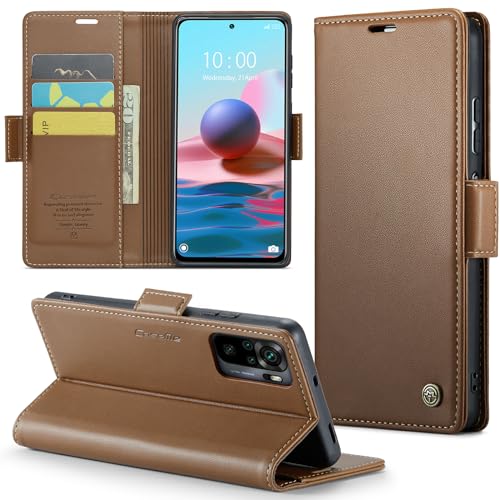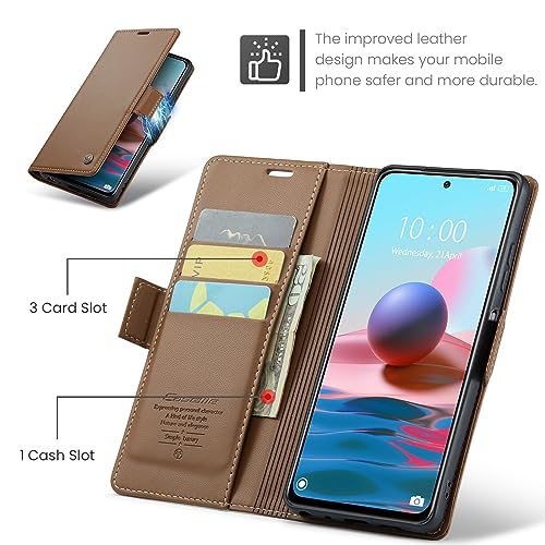 UNBLACK - جراب موبايل 023 قلاب من الجلد الصناعي مزود بفتحة للكروت متوافق مع موبايل ريدمي نوت 10 4G/نوت 10s من اونبلاك (بني)