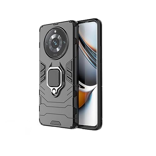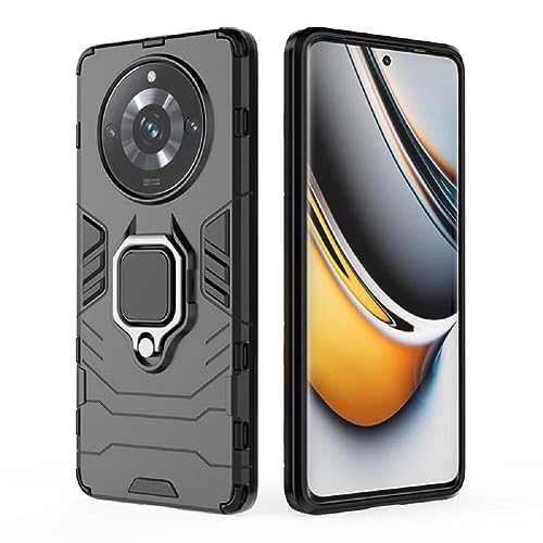 fashion mania - جراب حماية متين بطبقتين مضاد للصدمات بمسند حلقي مغناطيسي لموبايل ريلمي 11 برو شبكة الجيل الخامس 5Gريلمي بلس 5G أسود تي بي يو معدن بلاستيك