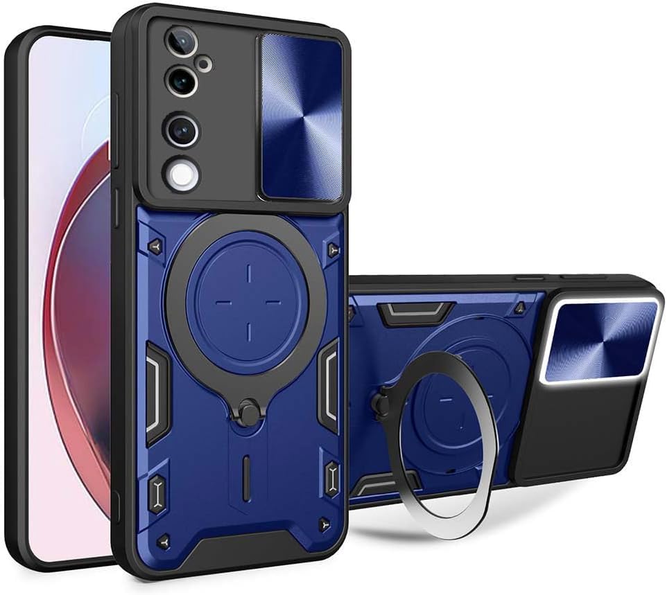 GRABIST - جراب حماية لموبايل فيفو V40/V40 برو، حماية ضد الصدمات مع غطاء منزلق للكاميرا، حامل حلقي CD، أسود (أزرق)