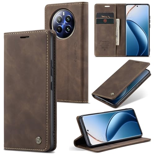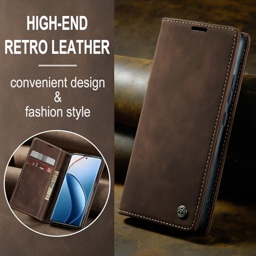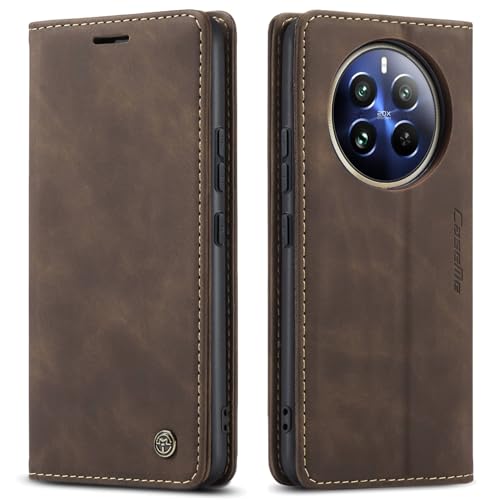 Generic - جراب موبايل متوافق مع ريلمي 12 برو/ريلمي 12 برو بلس بتصميم فاخر من جلد البولي يوريثين مع 2 غطاء قلاب وحامل بطاقات مع ريلمي 12 برو/ريلمي 12 برو بلس (كوفي)