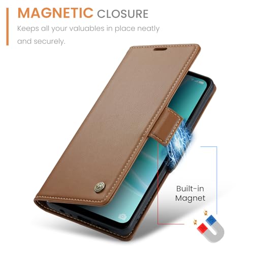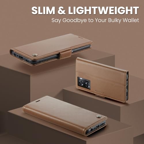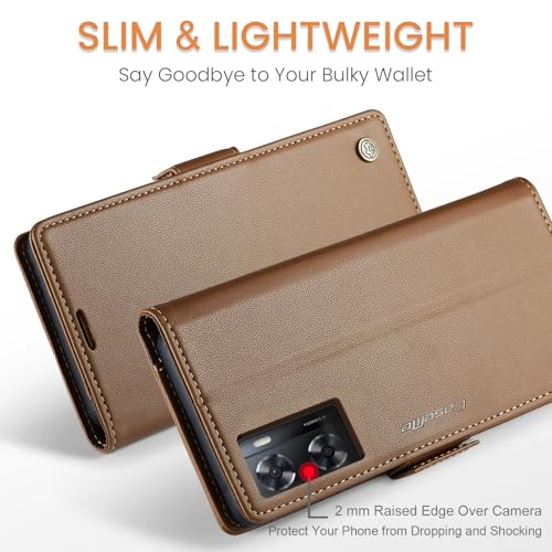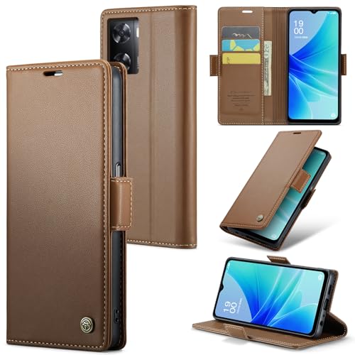 Generic - جراب حماية من الجلد الصناعي مع فتحة للكروت متوافق موبايل أوبو A57 - A77 - A57s - A57E - ون بلس نورد N300 - N20 SE بني