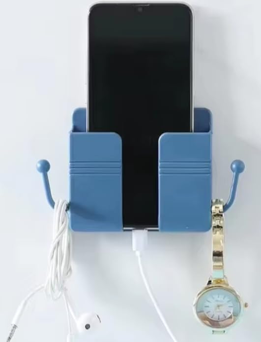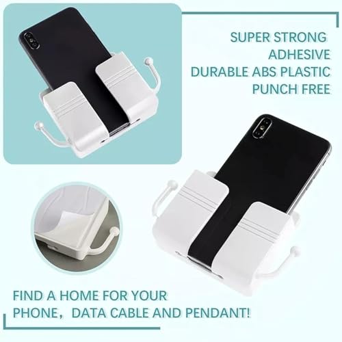 - حامل موبايل ذاتي اللصق يثبت على الحائط وبها خطافين لتعليق المفاتيح او سلك الشاحن ،حامل لغرفة النوم والمطبخ والمكتب ، متعدد الاغراض مع فتحة لشحن الجوال
