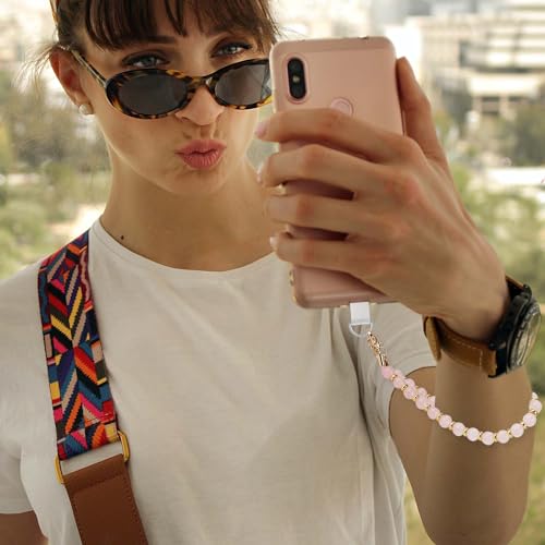 XIHIRCD - حزام معصم بحبل للموبايل، سوار معصم مطرز بحجر كريستالي، سوار قابل للفصل مع قطعتين من عروات الحبل، هدية للنساء والفتيات