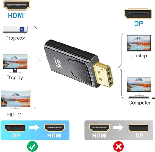 - 【سهل الاستخدام】إخراج صورة HDR ديناميكي، ألوان أكثر دقة وجودة صورة أكثر حيوية. يدعم محول DP إلى HDMI عرض النطاق الترددي للفيديو حتى 10.8 جيجابايت في الثانية. توصيل وتشغيل مباشر، لا حاجة إلى برنامج التشغيل والطاقة ولا يحجب المنافذ المجاورة على جهاز كمبيوترك. يدعم التبديل السريع.