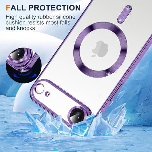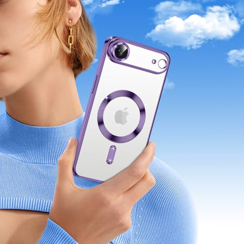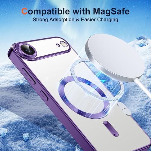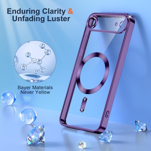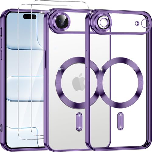 Phoona - غطاء مطلي من فونا لموبايل ايفون 17 اير 6.5 بوصة، حماية كاملة لعدسة الكاميرا و2 × زجاج مقسى، متوافق مع الشحن اللاسلكي ماج سيف، حماية عسكرية، ارجواني