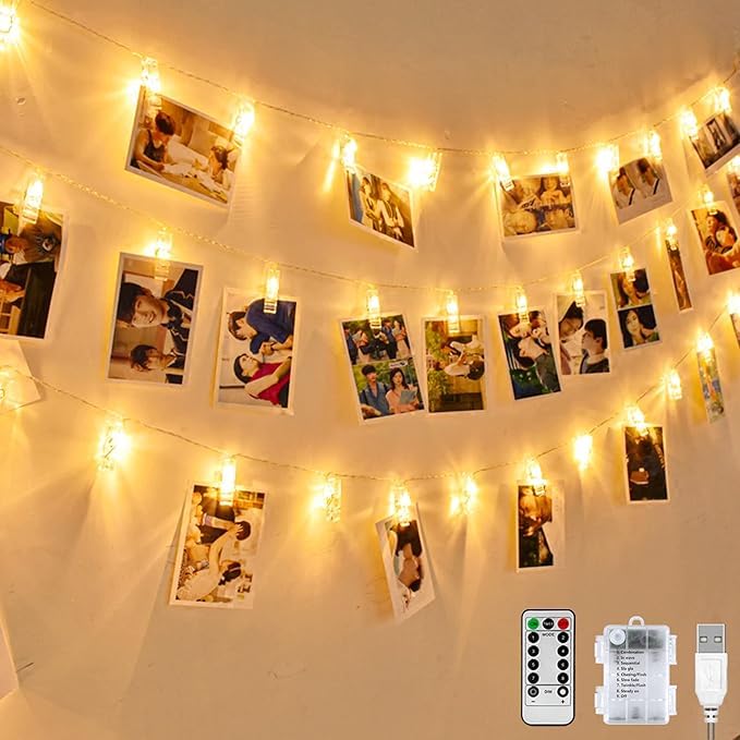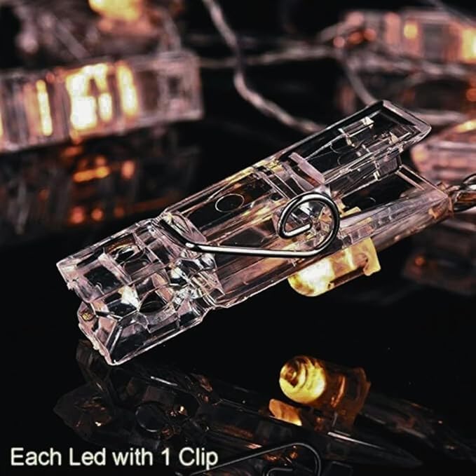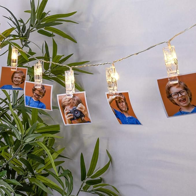 - شريط مصابيح بمشبك للصور مع 10 مشابك شفافة تعرض صورك وأعمالك الفنية والتذكارات المفضلة لديك بشكل جميل بإضاءة LED دافئة.