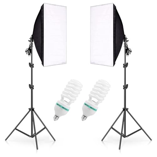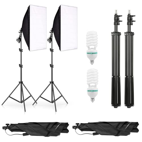 eWINNER - مجموعة اضاءة سوفت بوكس مستمرة للتصوير الفوتوغرافي مكونة من 4 قطع مقاس 50 × 70 سم مكونة من قطعتين وحامل اضاءة وحامل اضاءة مجموعة معدات استوديو الصور
