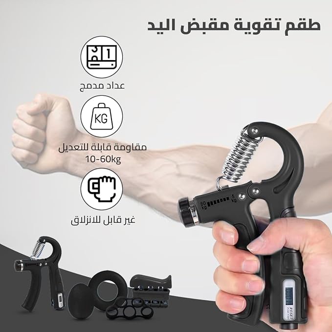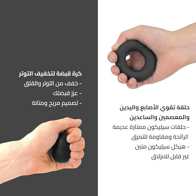 - تصميم متعدد الاستخدامات: مناسب لكل من الرجال والنساء لتحسين قوة اليد وقوة الإمساك وعضلات الساعد