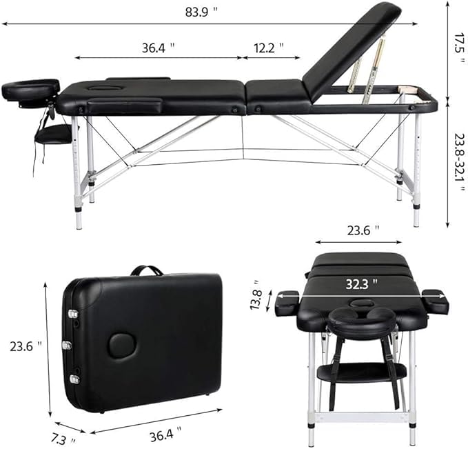 - سهل التجميع: سرير السبا سهل التركيب والفك. افتح الحافظة، واترك الأرجل خارجاً، واضبطها على الارتفاع الذي تحتاجه. ثم حرك مسند الرأس ومساند الذراعين ومساند الذراعين في مكانها. جميع المكونات قابلة للإزالة إذا لم تكن هناك حاجة إليها
