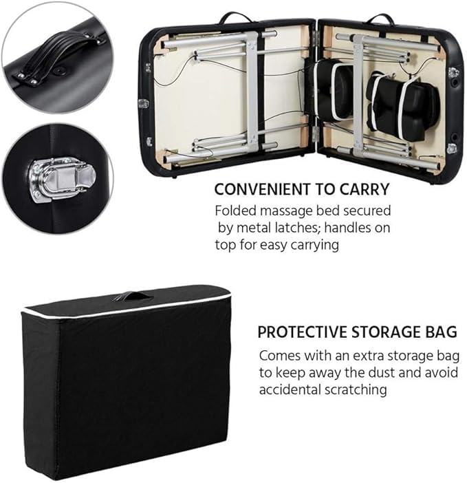 phyzioline - سرير تدليك محمول قابل للطي إلى 3 أجزاء وخفيف الوزن، طاولة تدليك بإطار ألومنيوم وارتفاع قابل للتعديل مع شنطة حمل من فيزيولين، أسود، 3 × 70 سم