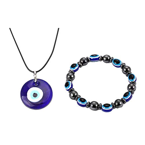 Picano - قطعتان من قلادة عين الحسد التركية وسوار همسة يد فاطمة مجموعة مجوهرات للحماية الحظ خرز اسود وازرق للنساء