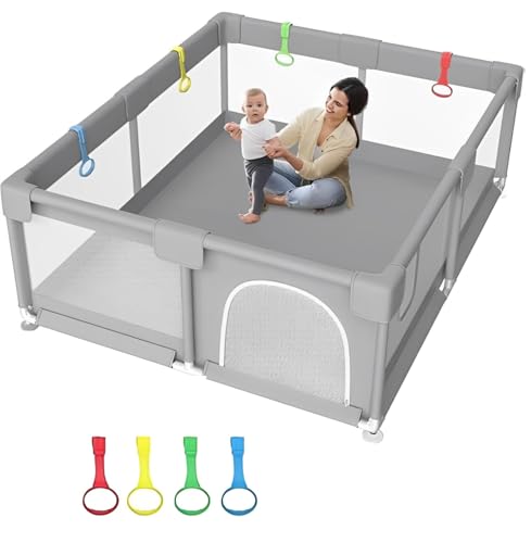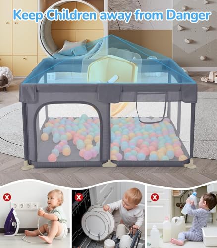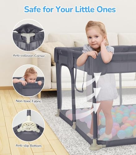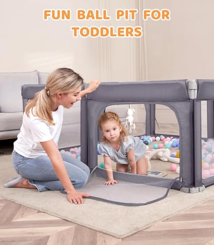 PICCASIO - ساحة لعب للأطفال مع بوابة، مركز أنشطة آمن للأطفال الصغار مقاس 1.20 × 1.20 م، ساحة لعب متينة مع قاعدة مضادة للانزلاق، سياج محمول للأطفال مع كرات ومقابض سحب معلقة من بيكاسيو، قابلة للتعبئة