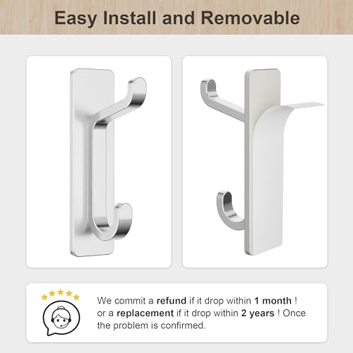 pickpiff - بيكيفف خطافات معطف لاصقة للغاية 10 باوند كحد اقصى خطاف معدني مقاوم للماء لتعليق المناشف واكليل الزهور والمحفظة والقبعة والقماش شماعة تثبت على الحائط للحمام وباب الحمام لون فضي جديد 4 قطع 10.0 رطل 10.0
