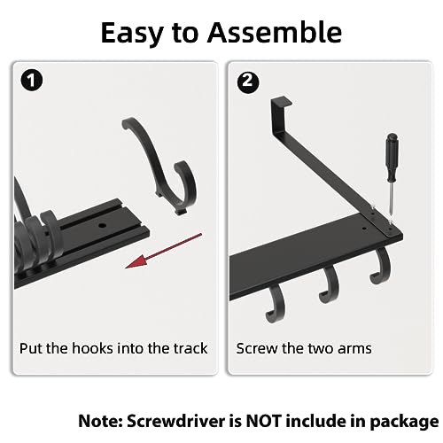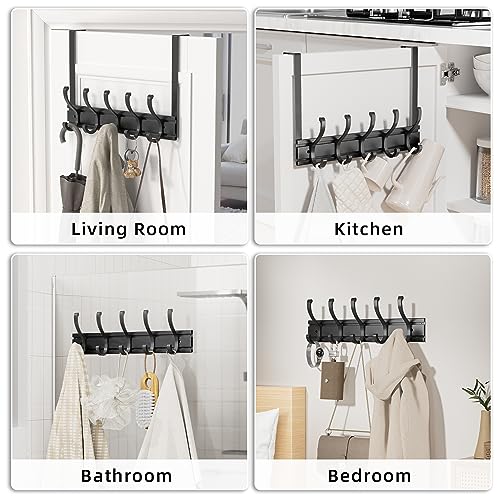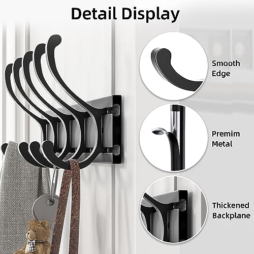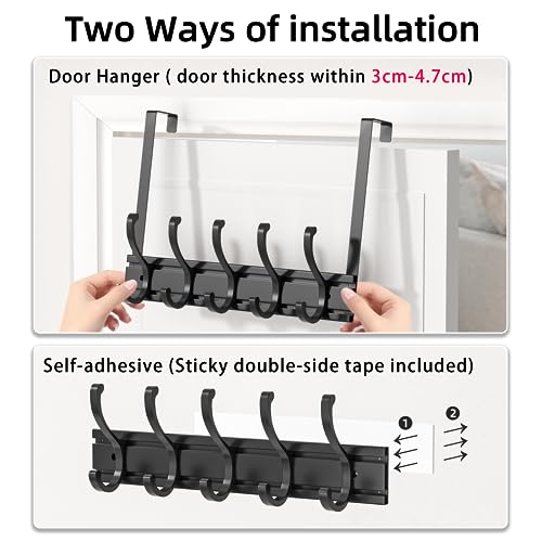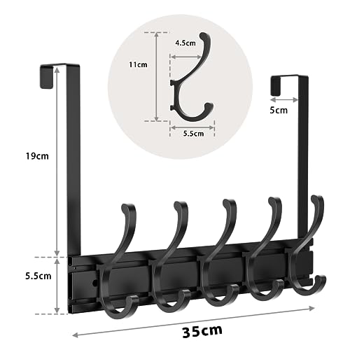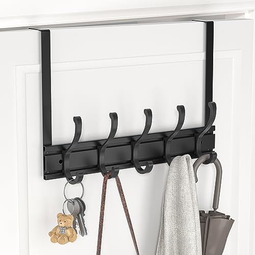 pickpiff - بيكيفف شماعة باب عالمية تثبت على الحائط رف ملابس شديد التحمل للباب الامامي والحمام وغرفة النوم والممر لتعليق المناشف واكليل الزهور والجاكيت والشنطة 5 خطافات معدن أسود