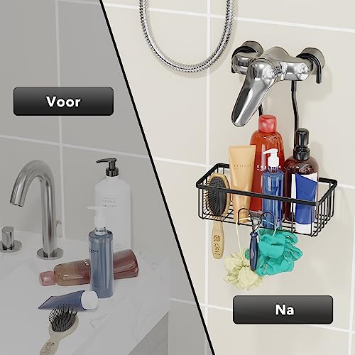 - لا يحتاج إلى ثقب وسهل التركيب: سهل التركيب للغاية ولا يحتاج إلى ثقب. تجميع سريع في غضون دقيقة واحدة وسيكون جاهزًا للاستعمال! اضغط قليلًا على الخطافين في المسافة بين حنفية الدش بدون أدوات.