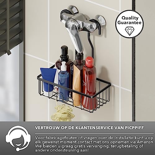 pickpiff - رف دش للتعليق بدون ثقب من بيكيفف، بتصميم سلة حامل للدش من الفولاذ المقاوم للصدأ لوضع الشامبو، 30 × 13 × 36.5 سم، أسود