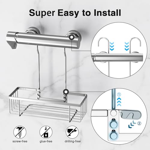 pickpiff - بيكيفف رف دش بدون ثقب لتعليق الشامبو سلة للتعليق منظم في الحمام مقاوم للصدا SS304 ستانلس ستيل 28 × 10.5 33