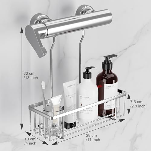 - ✔ ما تحصل عليه: 1 رف دش، مقاس السلة 28 × 10.5 سم / 11 × 4 انش والمسافة بين سلة التخزين والصنبور بعد التركيب 33 سم / 13 انش، 1 × دليل المنتج (اللغة الإنجليزية غير مضمونة)