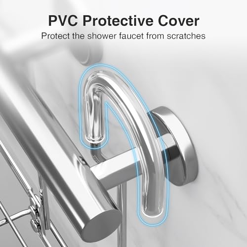 - ✔ مقاوم للخدش وغير قابل للانزلاق - خطافي رف الدش مغطى بأكمام بلاستيكية من بلاستيك PVC، مما يساعد على تقليل الخدوش على صنبور الدش وتحسين ثبات الرف المعلق.