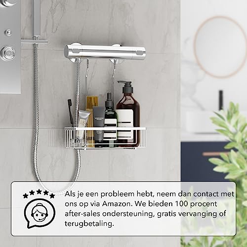 - ✔ مادة ممتازة - رف الدش مصنوع من الستانلس ستيل SS304 عالي الجودة وهو مجلفن ومطلي بالمسحوق، والذي لا يوفر حماية أفضل ضد الصدأ والخدوش فحسب، بل يوفر أيضًا الموثوقية ويمكنه حمل الحاويات الثقيلة بشكل أفضل من المواد الأخرى. قم بتعليق حامل الدش على صنبور الحمام الخاص بك لخلق مساحة تخزين إضافية مثالية للشامبو والبلسم وجل الاستحمام ورغوة الحلاقة وأكثر من ذلك، واستمتع بدش خالٍ من الإجهاد!