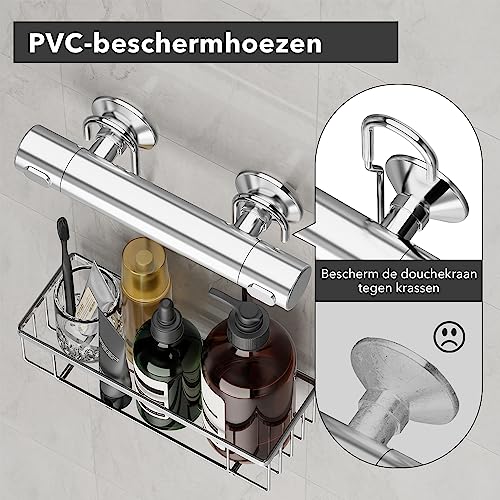 - ✔ مقاوم للخدش وغير قابل للانزلاق - خطافي رف الدش مغطى بأكمام بلاستيكية من بلاستيك PVC، مما يساعد على تقليل الخدوش على صنبور الدش وتحسين ثبات الرف المعلق.