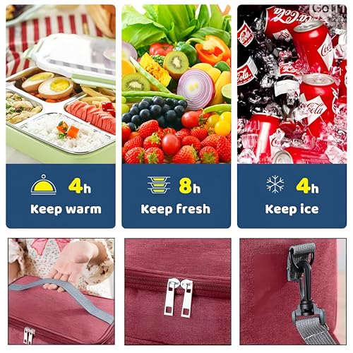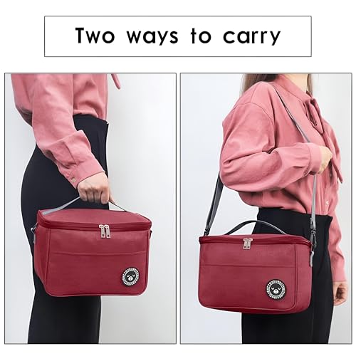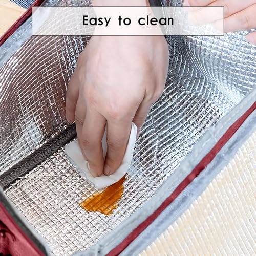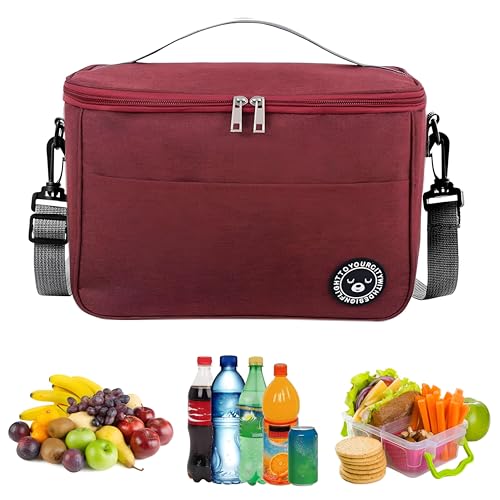 Generic - شنطة نزهة ومبرد واسع وقابل للطي وإعادة الاستخدام لتخزين الطعام الطازج والغداء في الهواء الطلق والمشي لمسافات طويلة وحفلات الشواء واحتياجات السفر (أحمر داكن)