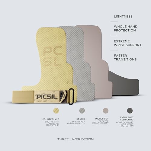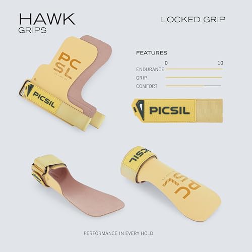 PICSIL - فيكسيل قفازات هوك + اساور معصم + حقيبة، تستخدم بدون مغنيسيوم، قبضة على جميع انواع سوبرسيز وقضبان الحديد، الاستخدام: لجميع الرياضيين، احذية التدريب والجمباز