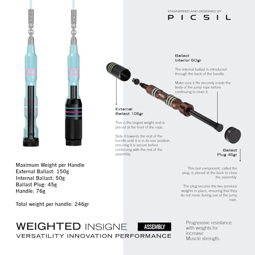 PICSIL - حبل القفز من بيكسيل إنساين، حبل قفز متعدد الاستخدامات بثلاثة أنماط: سريع، أو مزود بأوزان، أو للقفز المتقاطع، قابل للتكيف مع أي نوع من التمارين، من السرعة إلى تمارين القوة