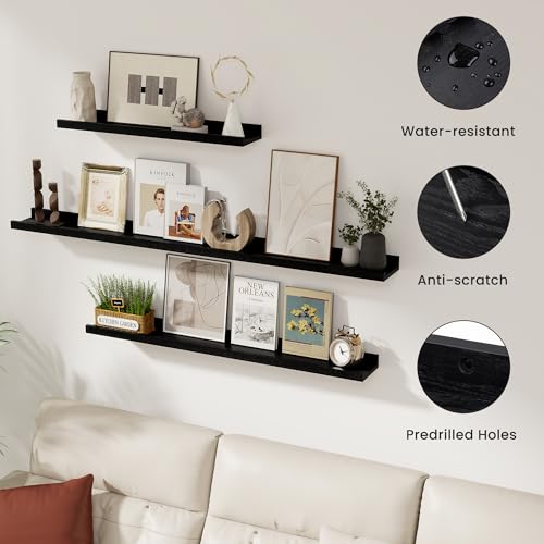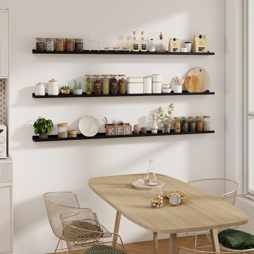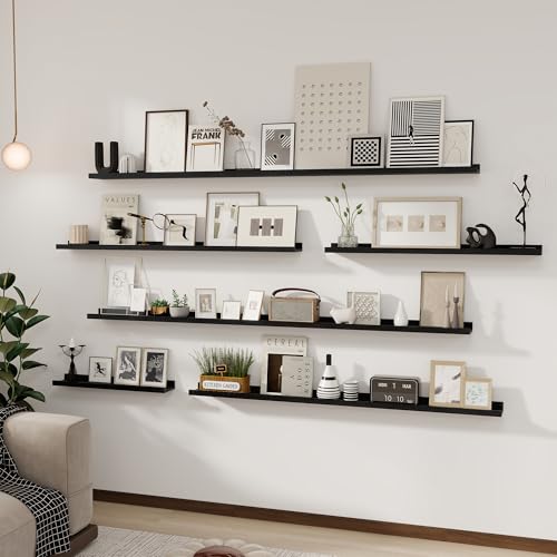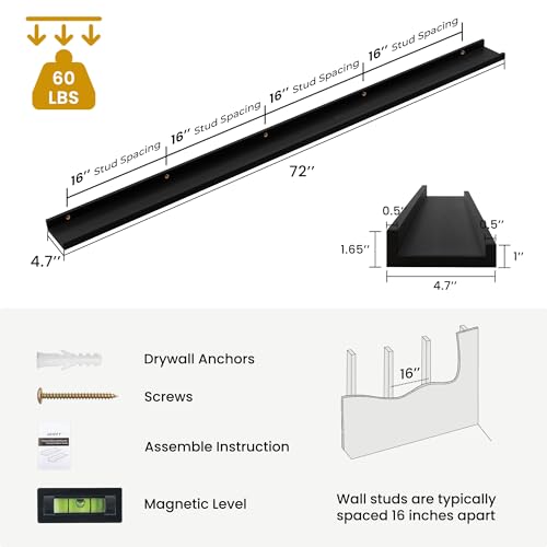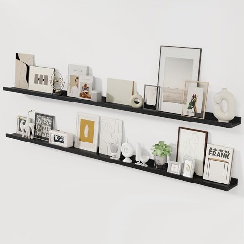 Acovy - رف معلق للصور من خشب الرماد الصلب، رف صور يثبت على الحائط لغرفة المعيشة وغرفة نوم الأطفال، لون أسود، 1.8 م