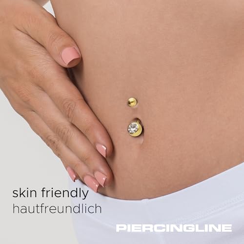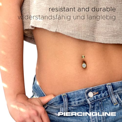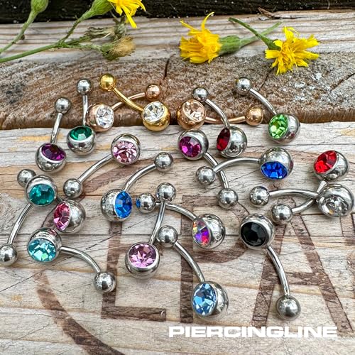 PIERCINGLINE - قرط ثقب على شكل موزة للبطن مصنوع من الستيل الطبي من بيرسينج لاين| مرصع بحجر كريستال واحد| بمجموعة متنوعة من الالوان والمقاسات, ستانلس ستيل