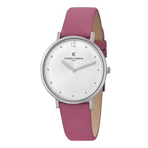 Pierre Cardin - ساعة للنساء من بيير كاردان CBV.1042 تناظري بمينا فضة بسوار الوردي
