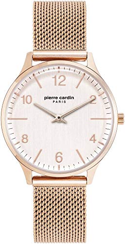 Pierre Cardin - ساعة انالوج بعقارب وسوار ستانلس ستيل شبكي للنساء من بيير كاردان - روز جولد