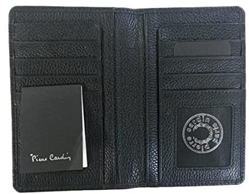 Pierre Cardin - حافظة بسبور, كروت بيير كاردان 12 جيب مقاس 11x18 سم بالنوتة والقلم جلد طبيعى أسود